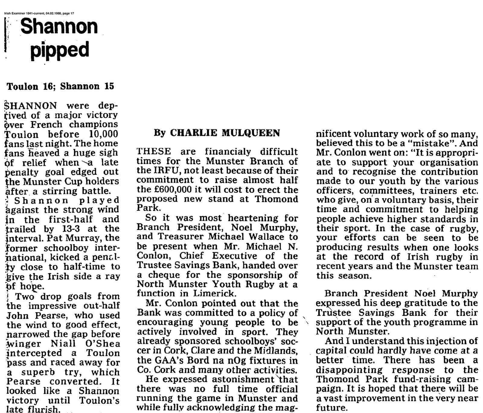 Welcome to the Shannon Rugby Football Club ARCHIVES site. Explore our rich history through articles, photos, and cherished memorabilia.